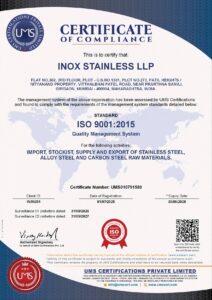 Export House – Inox Stainless LLP has been awarded by the Ministry of Commerce & Industry (Govt. of India) as ONE STAR EXPORT HOUSE. This certificate is in recognition for our exemplary performance in the Export Sector.